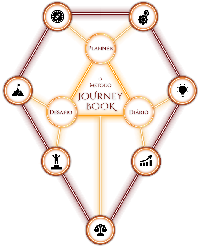 O Journey Book será seu mapa, as 5 grandes metas divididas em 12 partes iluminarão cada área da sua vida.