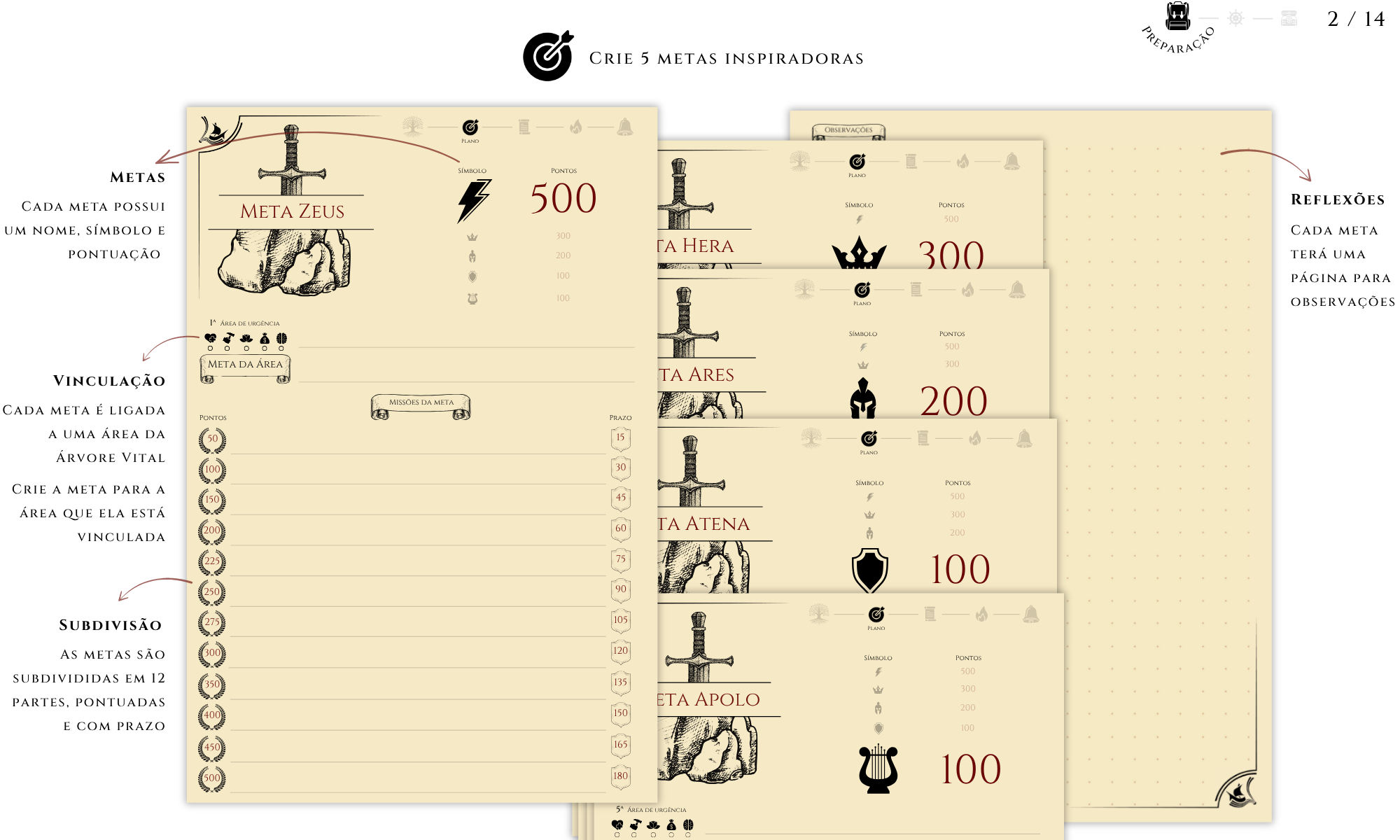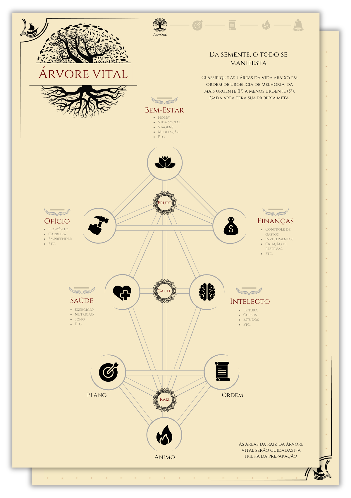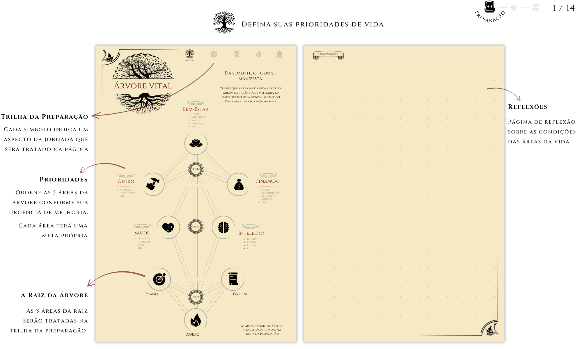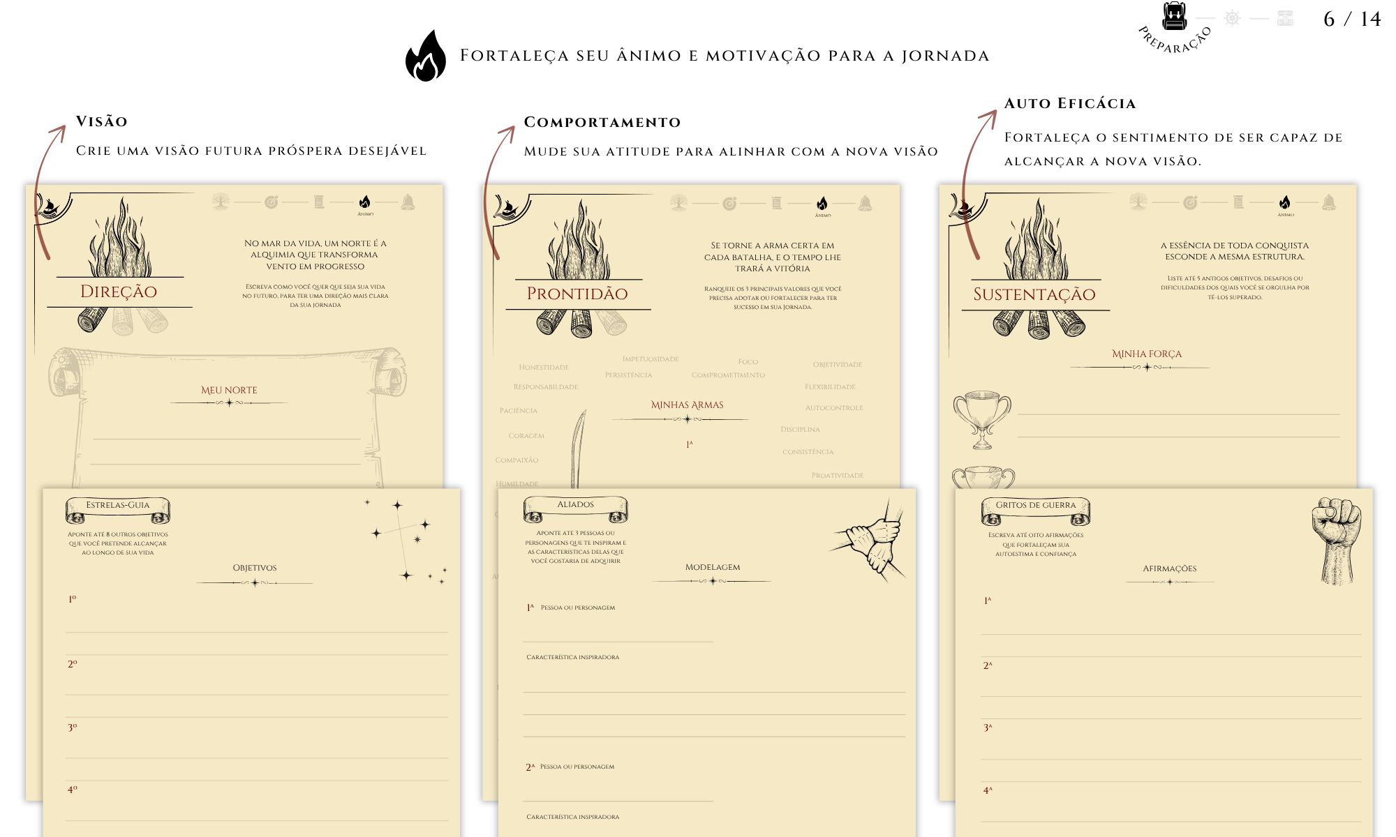 Toda jornada bem-sucedida começa com uma direção clara, o cérebro humano precisa dela para funcionar. Como uma máquina de previsão, ele busca reduzir incertezas e reage com motivação quando enxerga um caminho definido. No Journey Book, essa direção nasce da criação de 5 metas — uma para cada área da vida — divididas em 12 etapas tangíveis e pontuadas, transformando planejamento em progresso real.