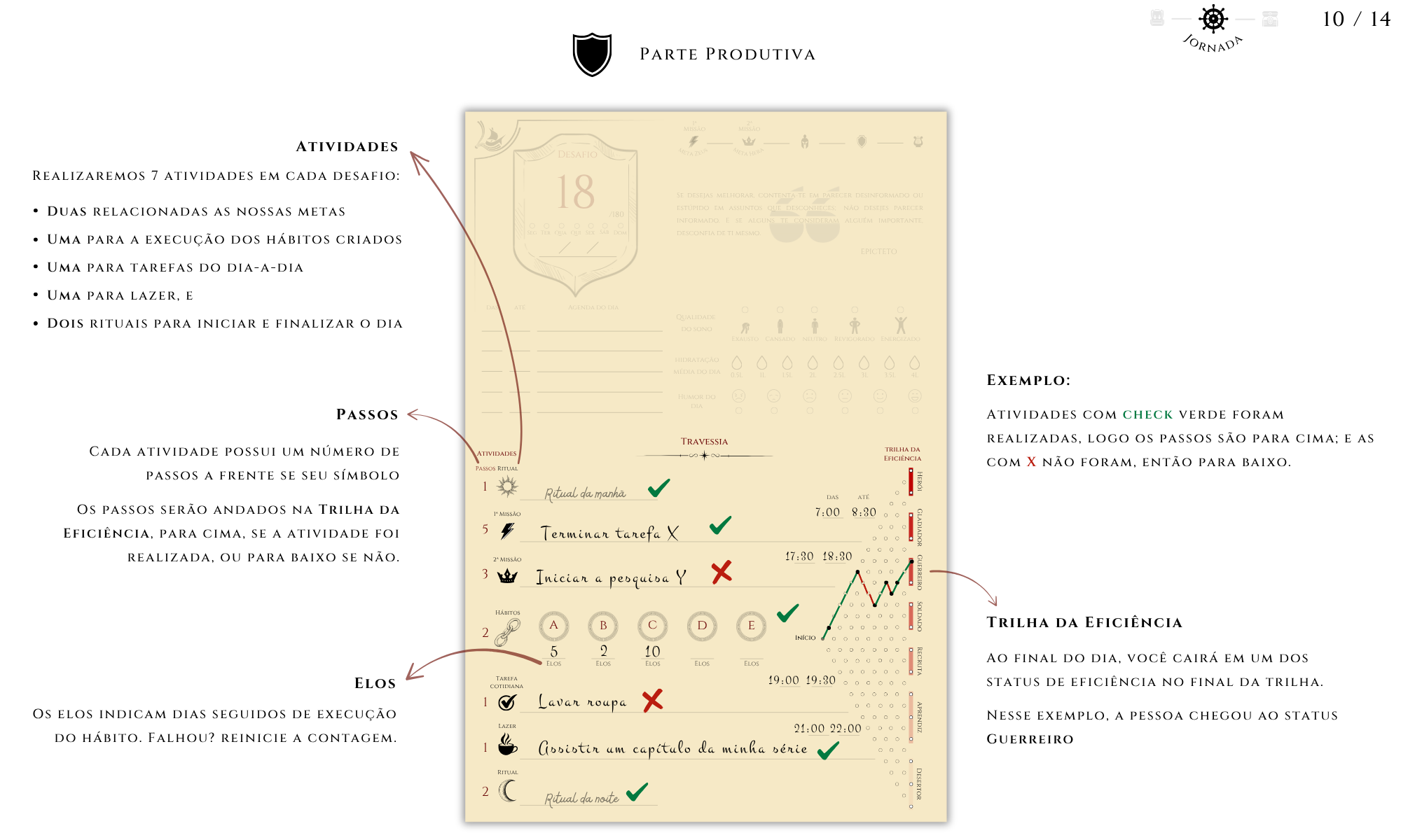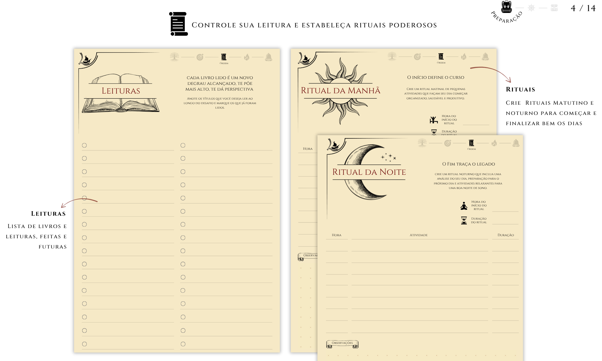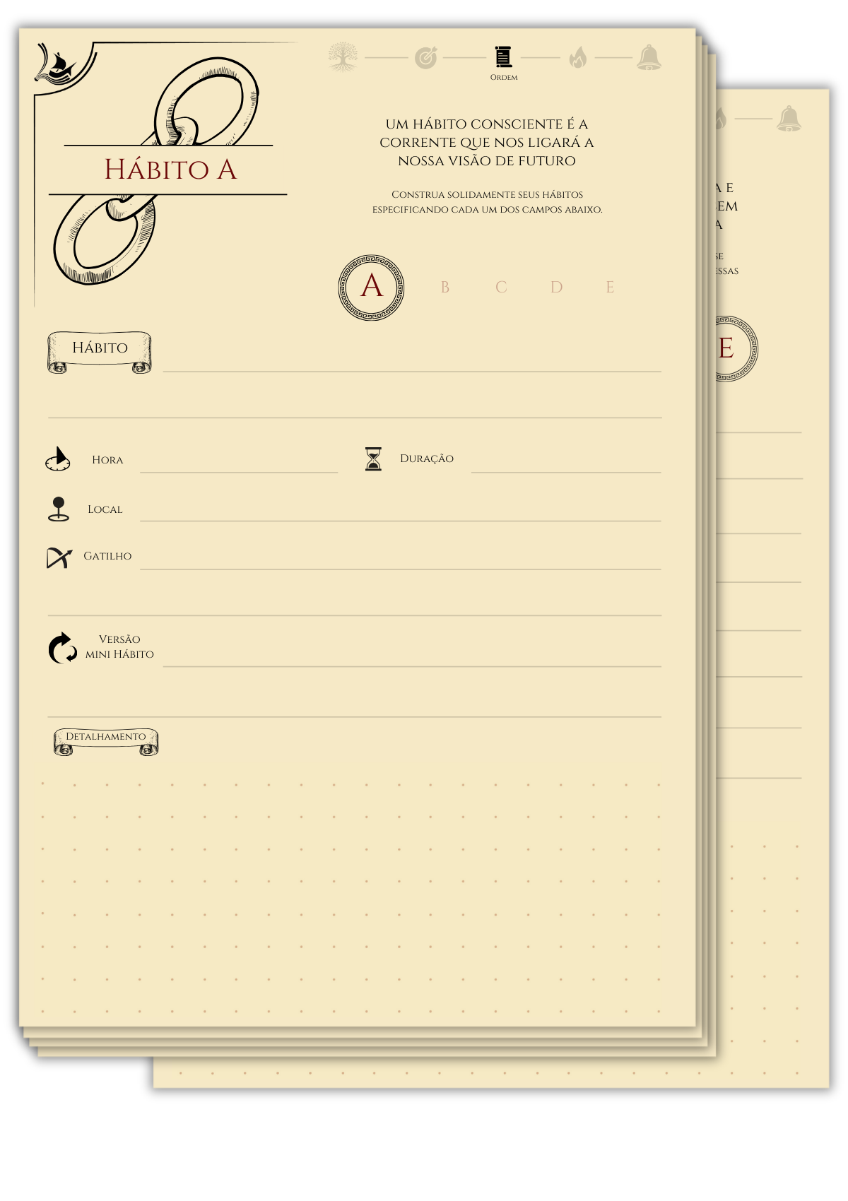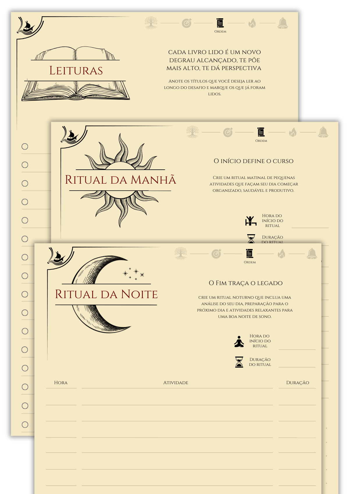 A desorganização sobrecarrega o cérebro, reduz o foco e gera fadiga mental. Quando tudo ganha estrutura, o córtex pré-frontal atua com clareza, a organização reduz a carga cognitiva, poupando energia cerebral. O Journey Book transforma essa ciência em prática, com páginas que ordenam sua rotina através de rituais matutinos e noturnos, criação de hábitos detalhados e um sistema de desafios e reflexões organizados, onde cada coisa tem seu lugar e cada ação, um propósito.