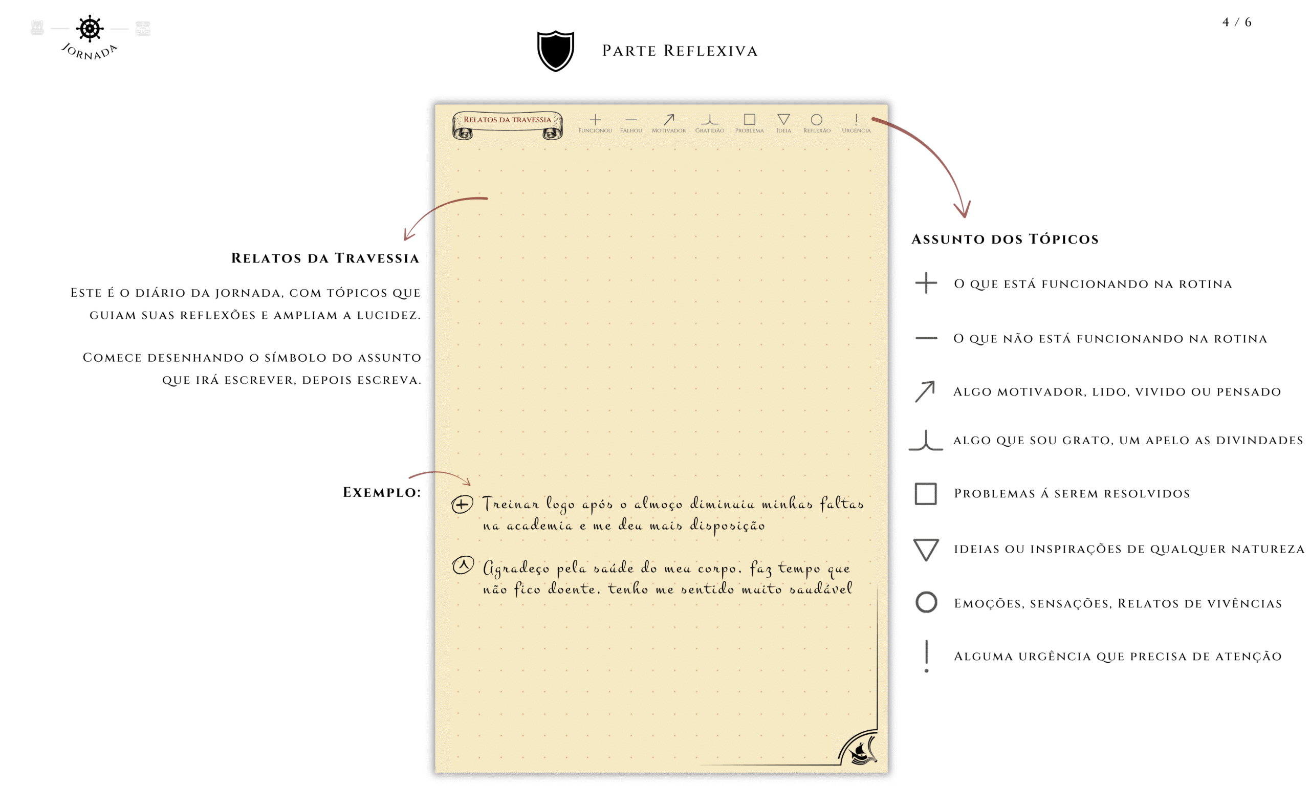 Com o nosso diário chamado ‘Relatos da Travessia‘, você registrará sua caminhada, refletirá sobre seu progresso e ganhará perspectiva, garantindo decisões mais conscientes e assertivas.