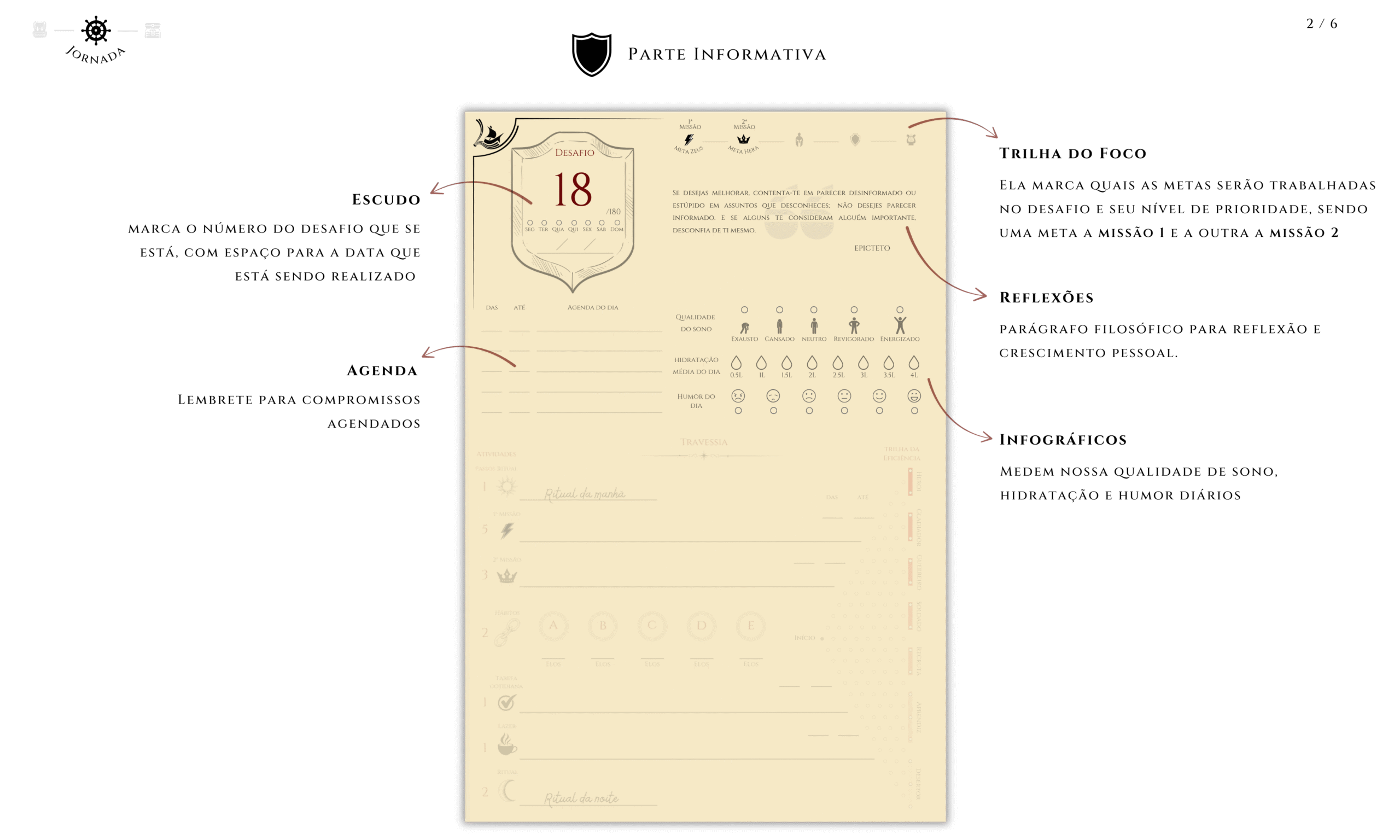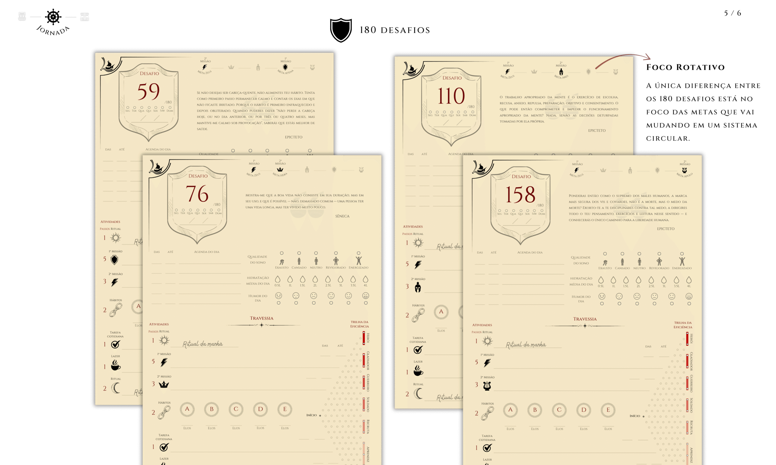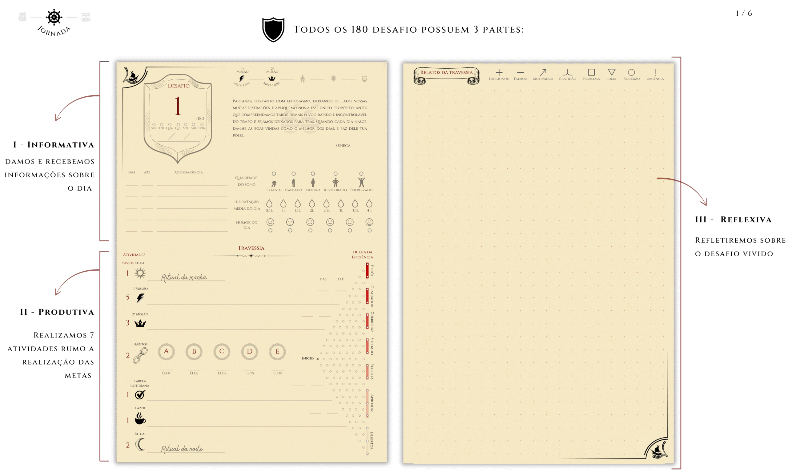 O Journey Book foi projetado para gerar consistência produtiva de longo prazo, através de um sistema de priorizações por pontos, além de desafios que integram produtividade, lazer e bem–estar.