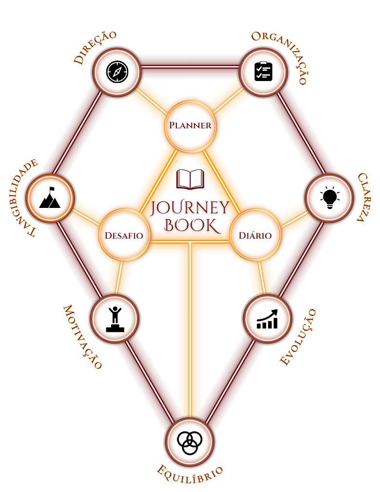 O Journey Book será seu guia nesse desafio rumo a conquista de suas metas mais desejadas.
